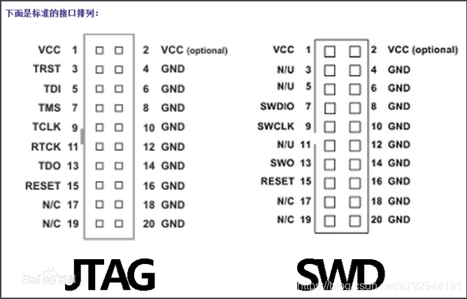 不用的芯片支持调试接口不同,配套的调试器也因此不同,常见的有以下两种,也是STM32支持的两种调试接口: