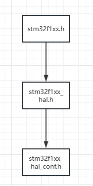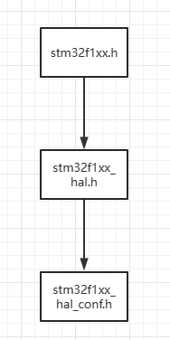 stm32f1xx_hal_conf.h文件里包含着所有外设的.h文件,就是#include "stm32f1xx_hal_rcc.h",#include "stm32f1xx_hal_gpio.h"这样的头文件,而该文件又被包含在stm32f1xx_hal.h文件里,stm32f1xx_hal.h又被包含在stm32f1xx.h,也就是如以下的关系,