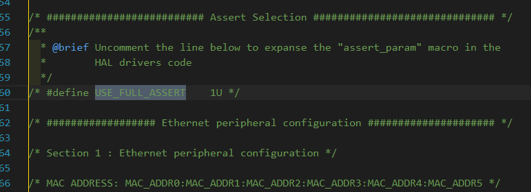 要实现真正的断言需要宏定义USE_FULL_ASSERT(可以在stm32xx_hal_conf.h文件中取消注释,如下图,也可以在IDE如MDK中宏定义)