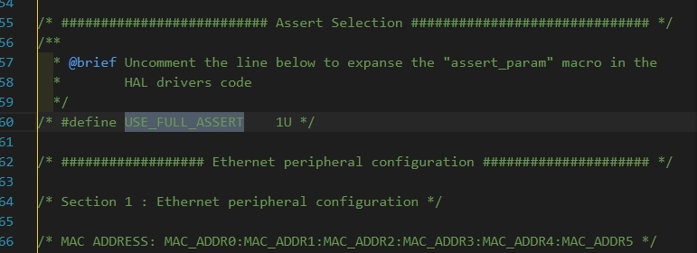 #endif /* USE_FULL_ASSERT */要实现真正的断言需要宏定义USE_FULL_ASSERT(可以在stm32xx_hal_conf.h文件中取消注释,如下图,也可以在IDE如MDK中宏定义)