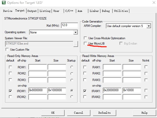 MicroLib是一个微型的C库,提供了嵌入式常见的c的函数库,但是因为是对嵌入式函数的支持,所以相比于linux的gcclib很不完整;之所以需要勾选,是因为有的时候需要使用一些诸如在"stdio.h"来实现printf的时候,是需要c库支持的,这些底层c库的API接口以及实现stm32固件库是不提供的,注意stm提供是固件库,是直接操作(硬件)寄存器的,而c是操作系统层面的,属于软件层面的,所以有需要的时候勾选上;勾选上也会影响堆栈的初始化方式,也可能会与C库的区别