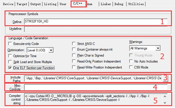有Level0 - Level3四个选项 设置编译器命令行: -Onum) 初学者、在线调试建议使用Level0,也就是不优化,这样执行的效果才和代码一 样。 如果配置成Leve13,在线调试可能有些地方优化而不能打断点
