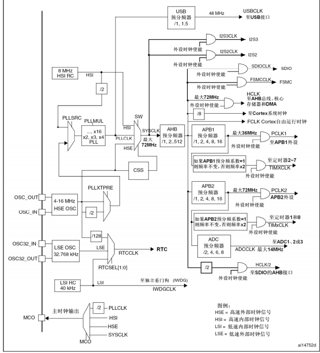 哪些外设用了哪个时钟--参考手册2.1系统构架小节